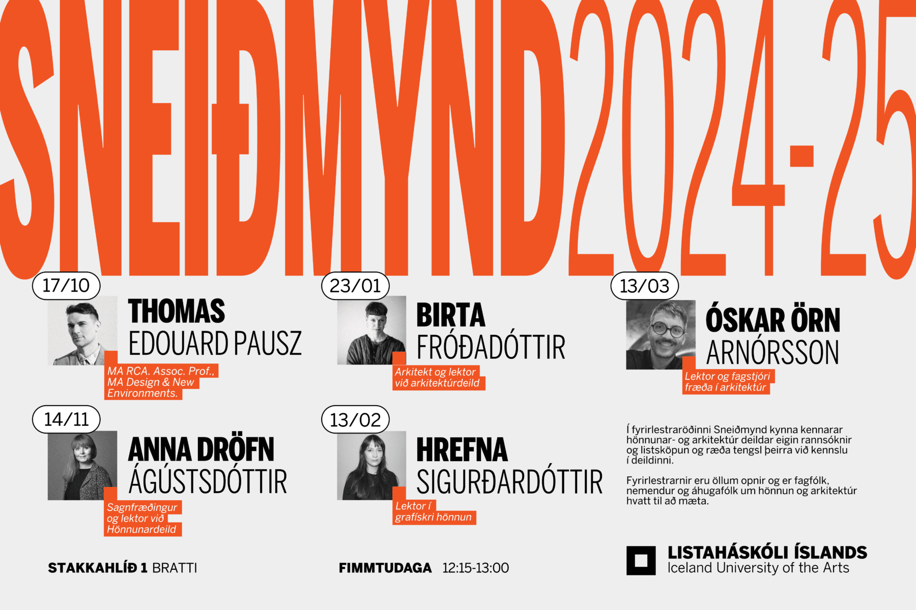 Í fyrirlestraröðinni Sneiðmynd kynna kennarar arkitektúr- og hönnunardeildar eigin rannsóknir og listsköpun og ræða tengsl þeirra við kennslu í deildinni.