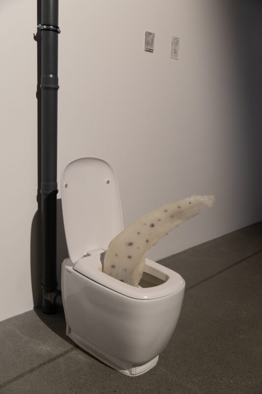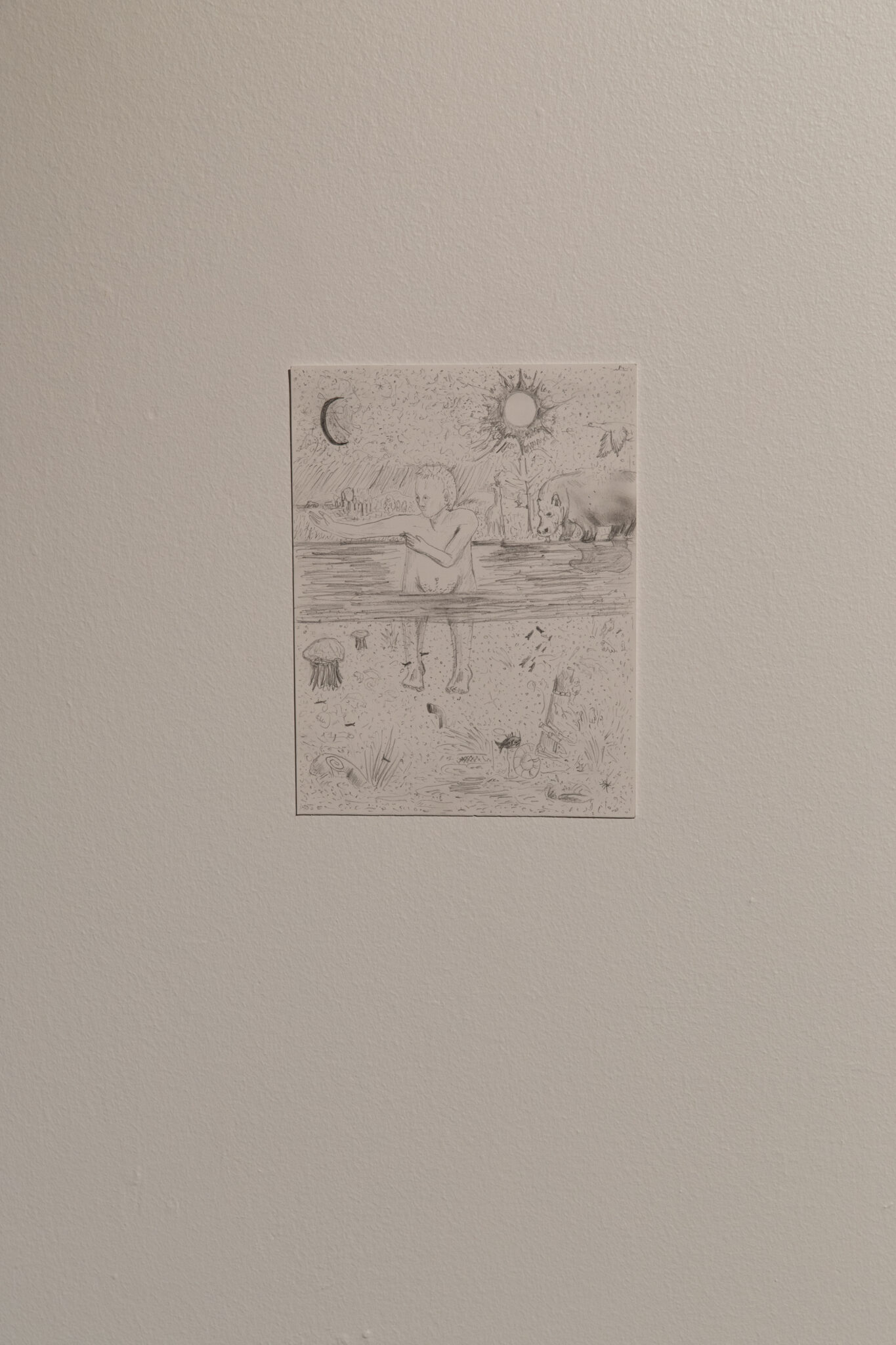 Liquid, which looks like blue Powerade mixed with a pissy energy drink, swirls around the drain before flushing down the tailpiece and straight into the sea. The fingerlings and tadpoles drink greedily from the pipe that leads up to my bathroom. Limbs sprout out of their bodies, fins with feet, fingers on top of toes, genitals and claws. They float up to the surface and poke the ground.