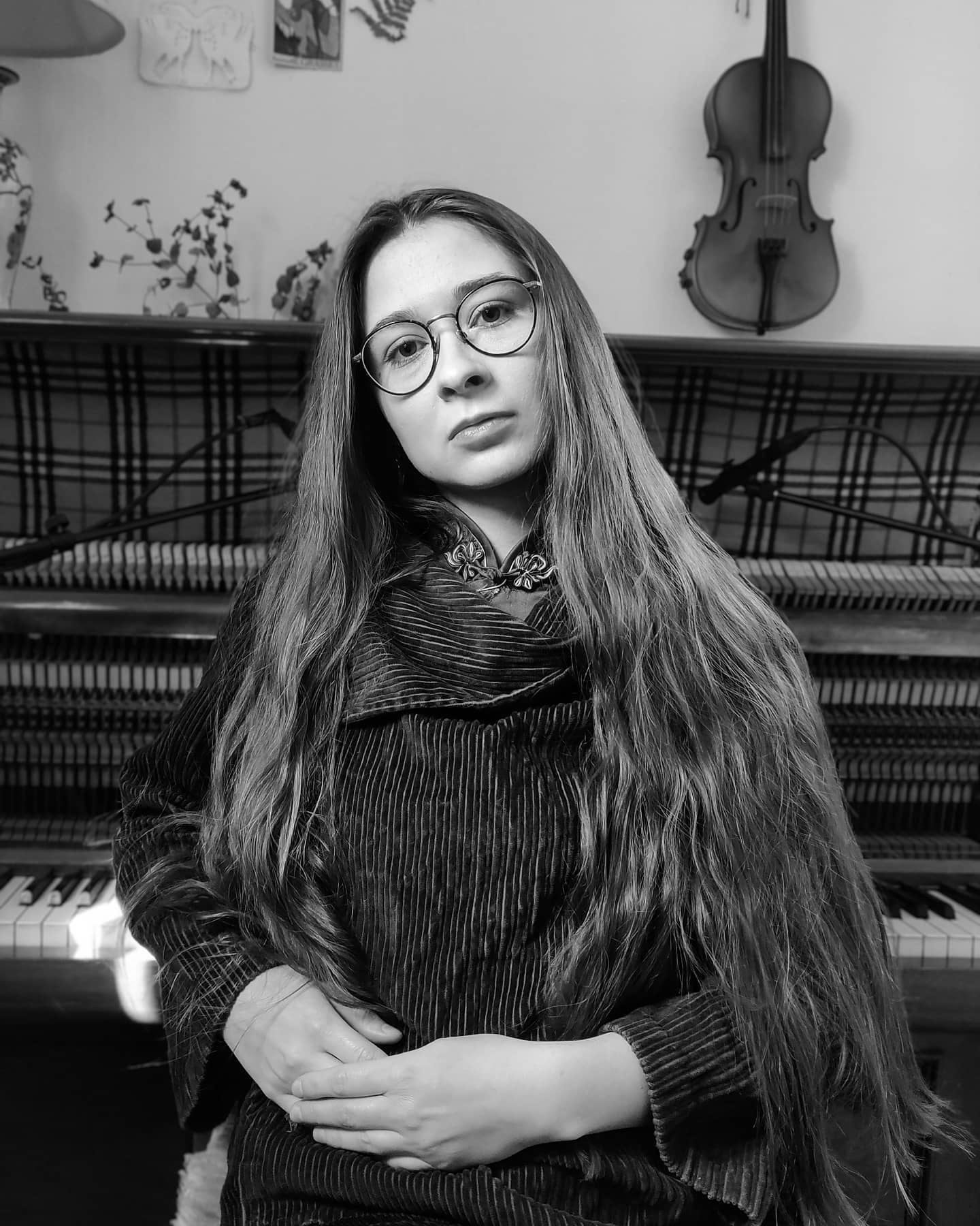 Ea Wiimh is a 24-year-old Danish composer and lyricist. She grew up in the Danish folk music environment, drawing much inspiration for her compositions. She started out mainly as a songwriter in her teenage years, but an internship in the Danish Royal Theater’s orchestra changed her focus to composition, with drama, storytelling, and lyrics as the key components. During her degree, she has released two full-length albums, ‘Bevægende Stilstand’ and ‘Vårdåb,’ with the Danish label ExoPAC. Additionally, she has participated in exchanges to the Franz Liszt Academy of Music and The Academy of Performing Arts in Prague.