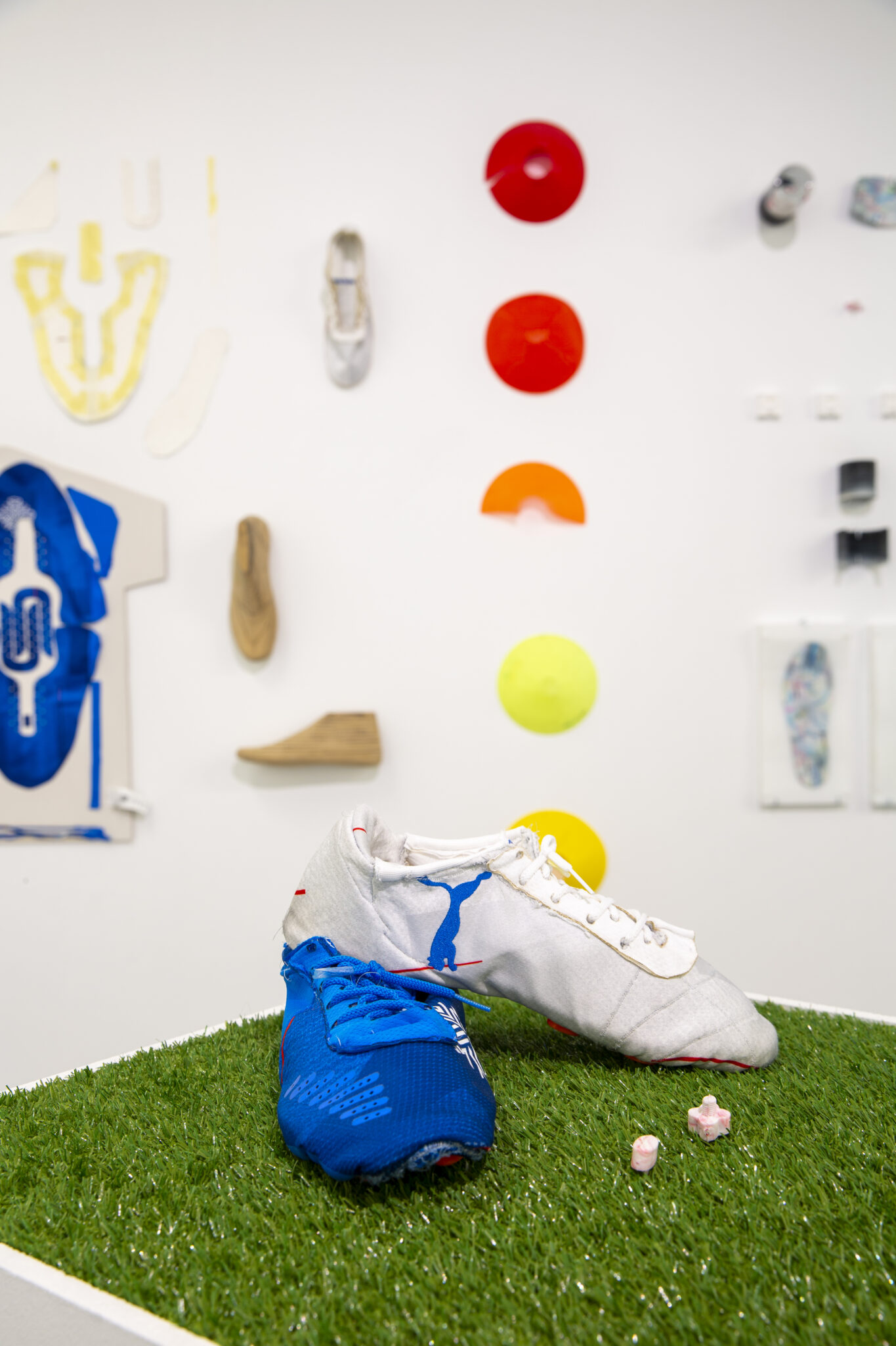Replica sheds a light on the excessive supply of football jerseys but with football comes a massive industry of production and consumption. Every season football clubs change their jerseys and design at least three new ones for fans to purchase. Most jerseys end up in the trash or storage after one to three years when they are thought to have fulfilled their purpose and most are made with 100% polyester. Replica revolves around designing football boots with discarded jerseys. The boots are modular which makes the boots easily recyclable and more efficient use of the material. In that way the project speaks to emphasis on sustainable design and sustainable football.
