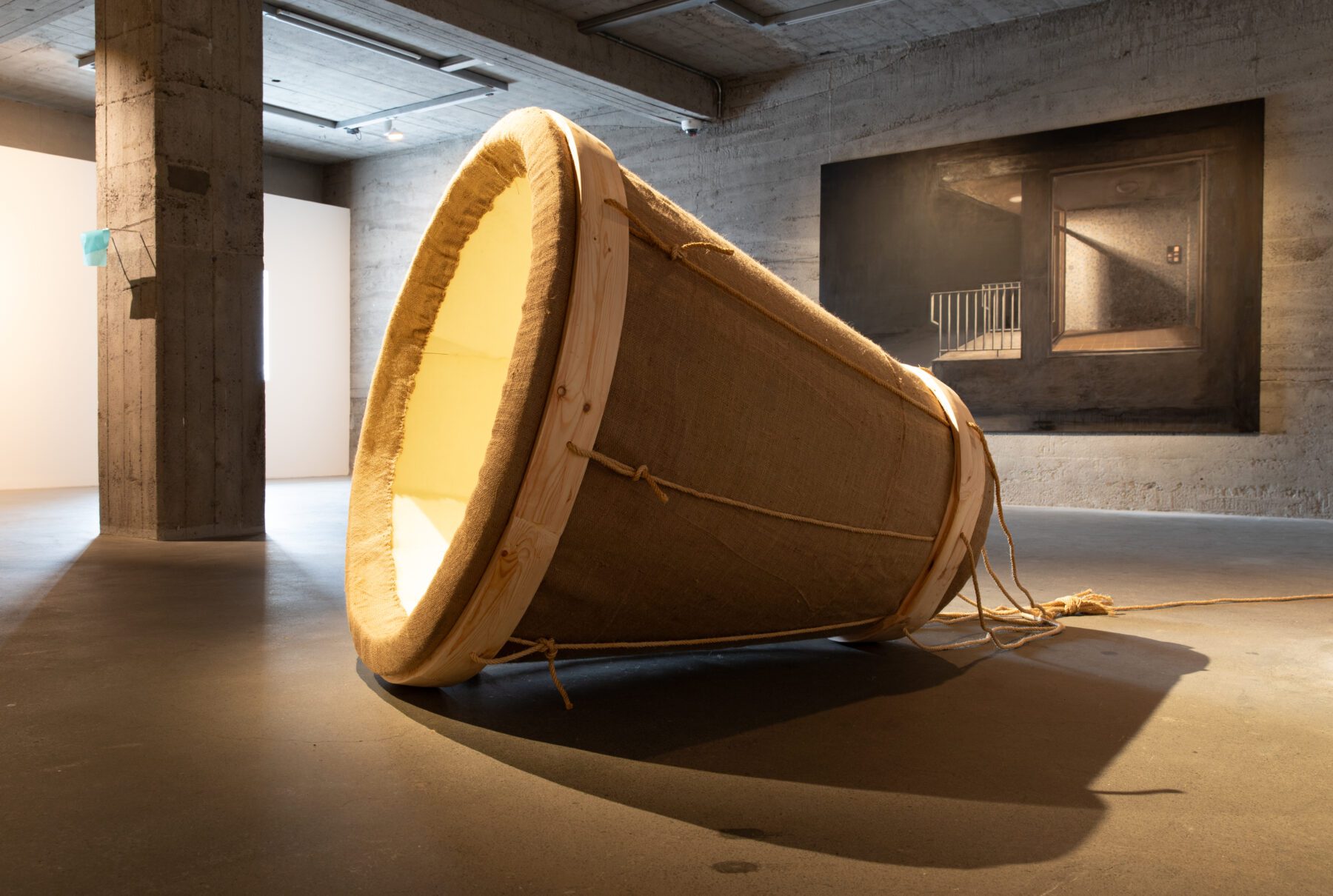 Foam, steel, burlap, wood, sisalrope