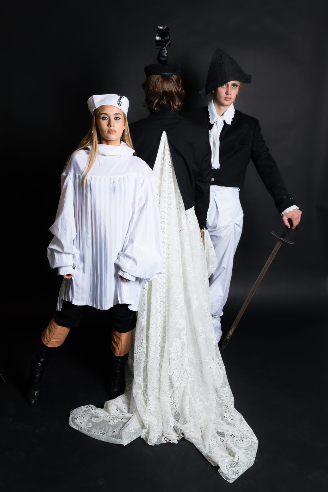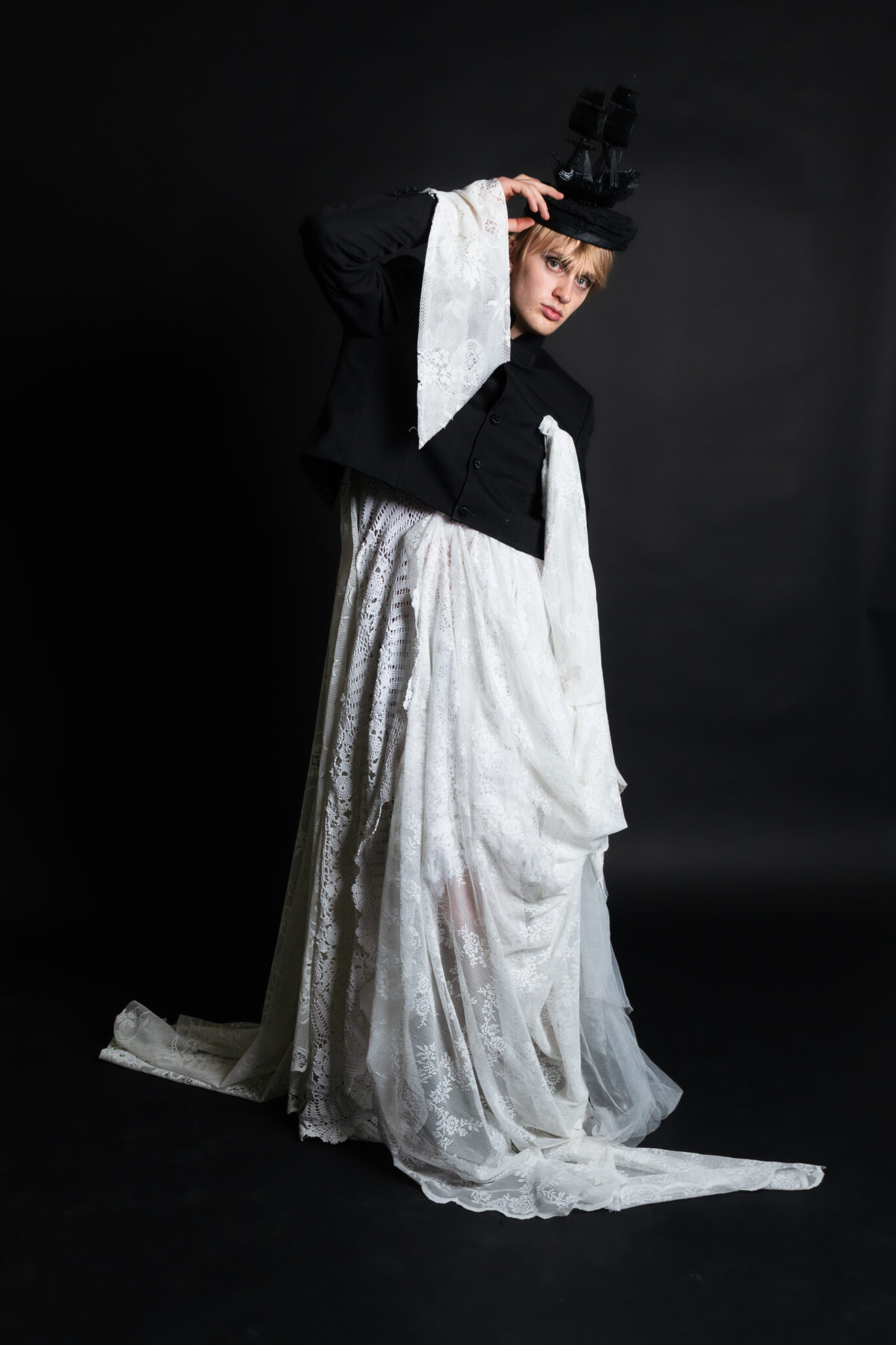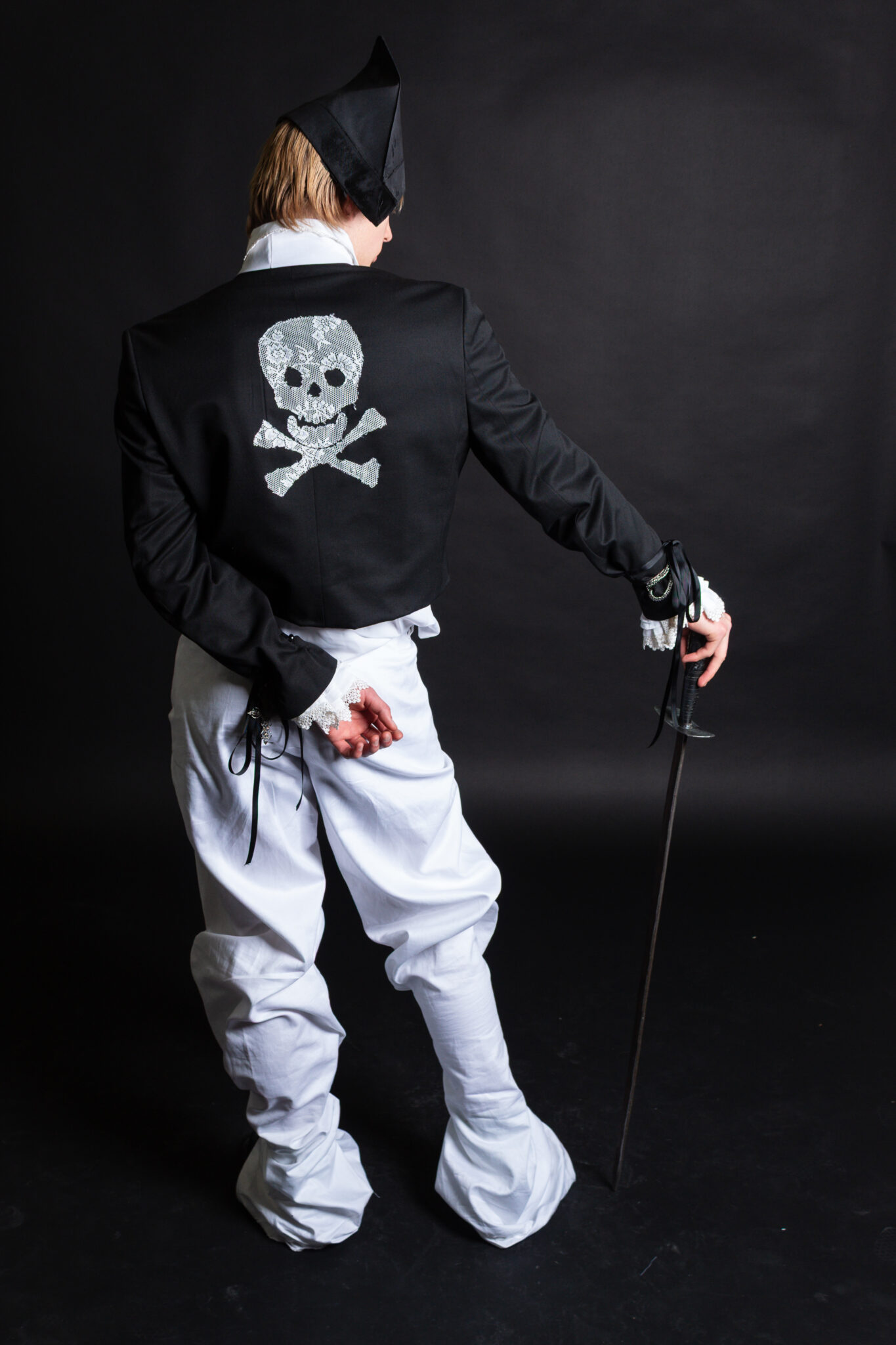 Ferlið byrjaði á rannsóknum á tíðaranda 18. aldar þar sem að ég fann mikin innblástur í sjóræningjum og hallaðist rannsóknin að mestu þar. Franska byltingin kom inn á köflum þar sem að fagrar silouettur og efni gripu mig gríðarlega. Ég reyndi að setja saman allt sem að mér finnst fallegt úr andstæðum áttum til þess að skapa fallega heild á milli Gullöld sjóræningja og frönsku byltingarinnar.