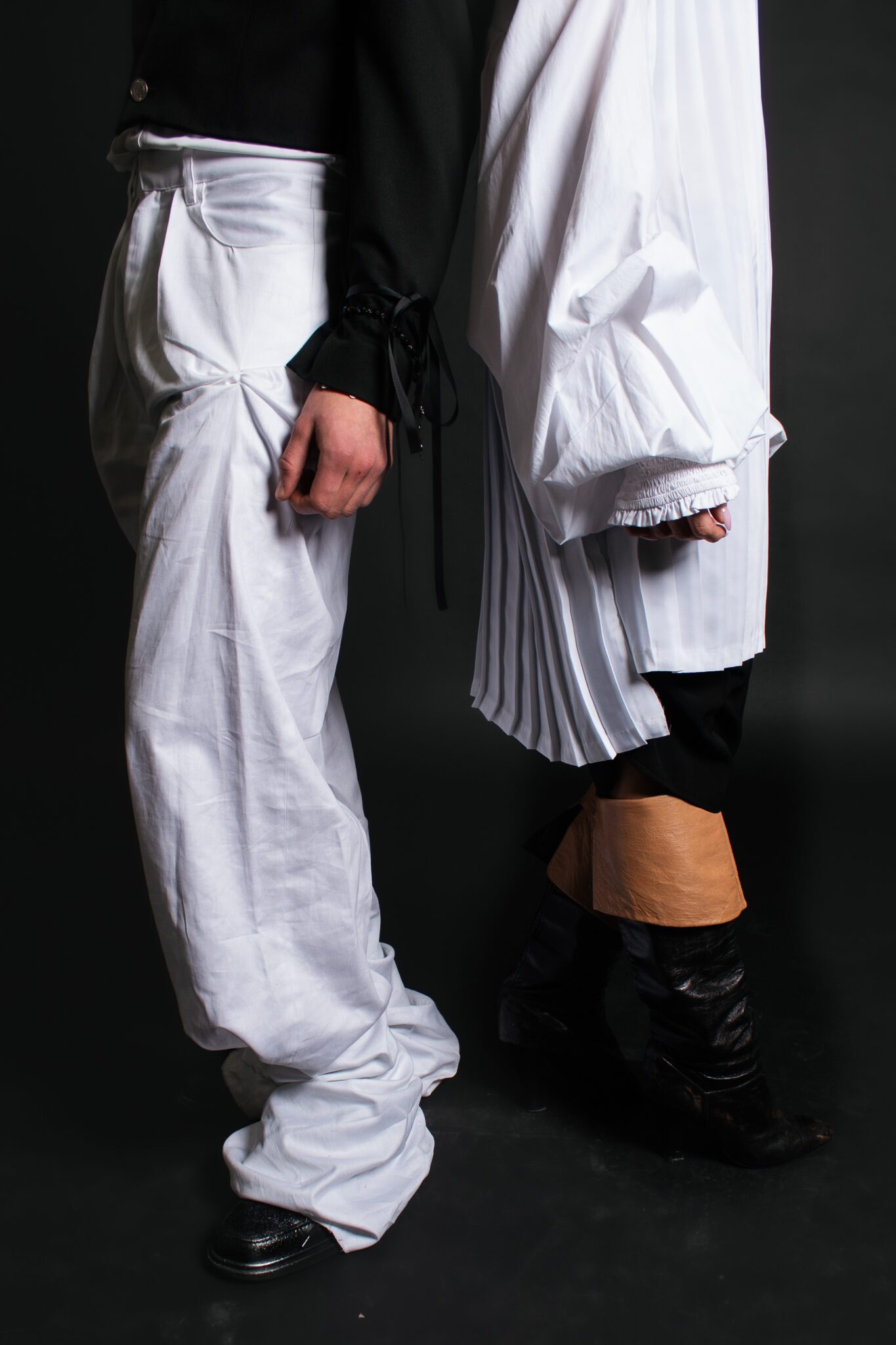 Línan mín dregur innblástur frá áhuga mínum á forn klæðnaði og menningu. Ég vildi skoða hvernig ég gæti sameinað mismunandi tímabil, menningarheima, stéttir og stíla í eina heild, þráðurinn á milli stétta.