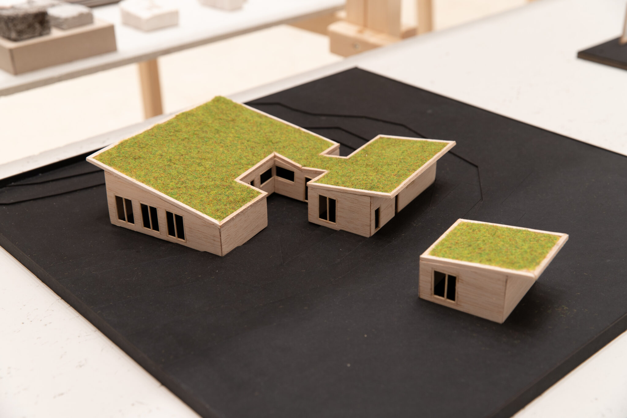 A core with a courtyard where indoor and outdoor areas flow well together. Where the highest peak of the house forms shelter from the strongest winds and the sunlight and best view can be enjoyed. Core where the family can spend quality time together is surrounded with areas that provide privacy if needed.