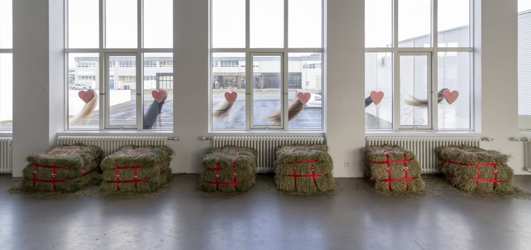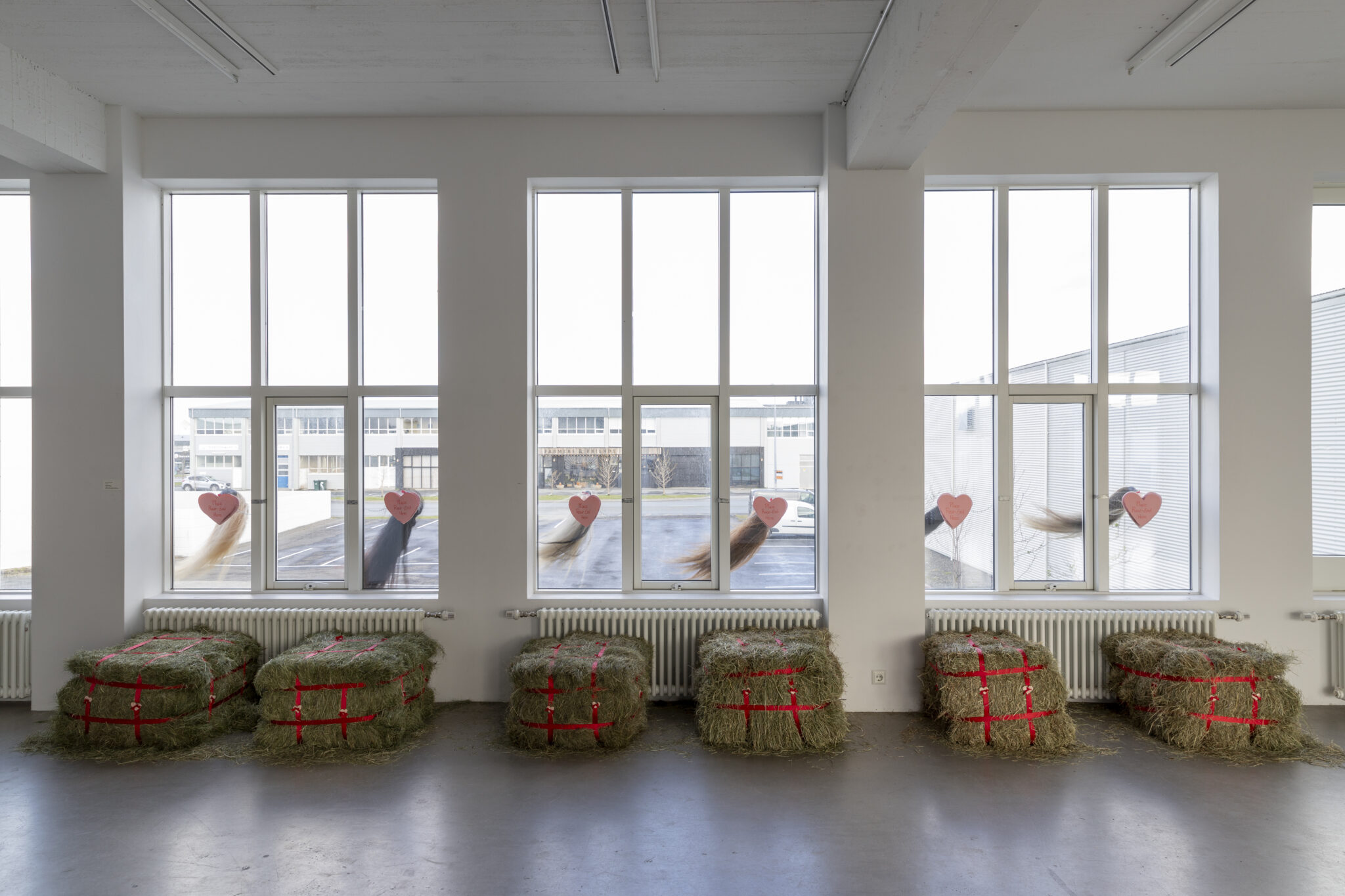 Verkið Rear-Ends er þátttakendaupplifun þar sem ánægja og valdefling sameinast í leikgleði. Ímyndaðu þér hest til að fara á bak á og klifraðu upp á heybaggann, til þess að lyfta þér upp frá gólfinu og takast við jafnvægið sem ríkir milli skemmtunar annarsvegar og styrks hinsvegar. Þegar þú hefur stigið upp á heybaggann, þá þrýstir þú afturendanum upp að glugganum sem er sú sýn sem mætir gestum er nálgast aðalinngang Nýlistasafnsins. Fyrir þá sem eru óttalausir er þetta áræðið stökk fullt sjálfstrausts, styrks og ævintýraþrár! Ertu til í reiðtúr?