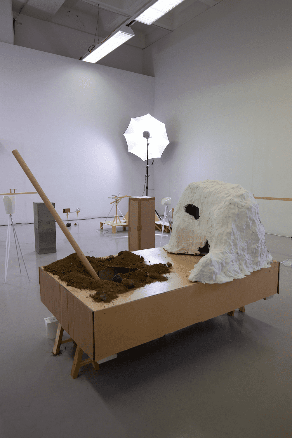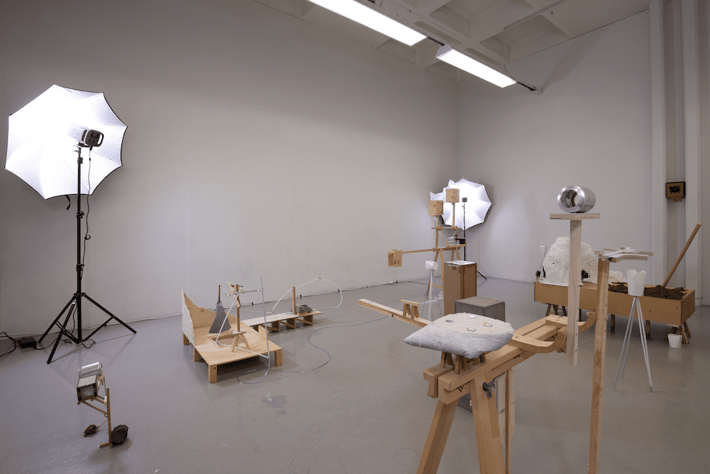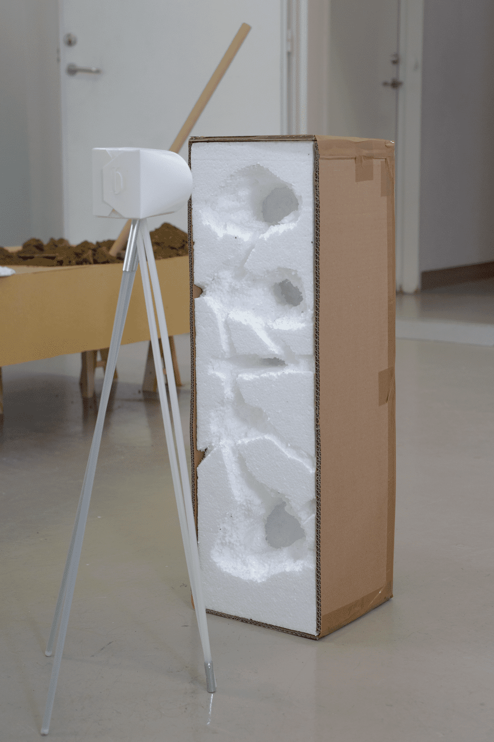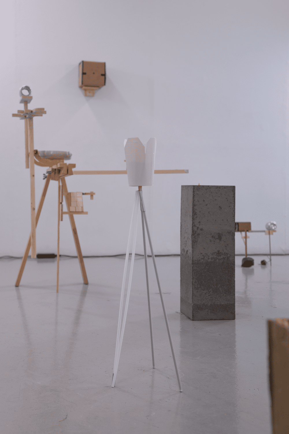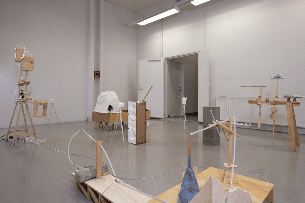for circa in other is Atli Finnsson’s solo exhibition. Atli’s process is characterised by an impulsive approach to material, where form emerges from the material properties of objects. More often than not, he works with readily available or reused materials from his immediate environment. The works take shape in improvisation, where motifs are defined and repeated, distorted and stretched. The approach is similar to that of an instrumentalist who improvises a melody and then repeats the melody by banging its rhythm on another object close by. Recurring themes in Atli’s works include systems, games, philosophical speculations and drawing. Recently programming has become an important theme, with the exhibition title “for circa in other” referencing the definition of a for loop. A for loop is a section of code that is repeated until a condition is met. In this case the for loop does not serve a specific function, but instead it’s definition and function is unclear.