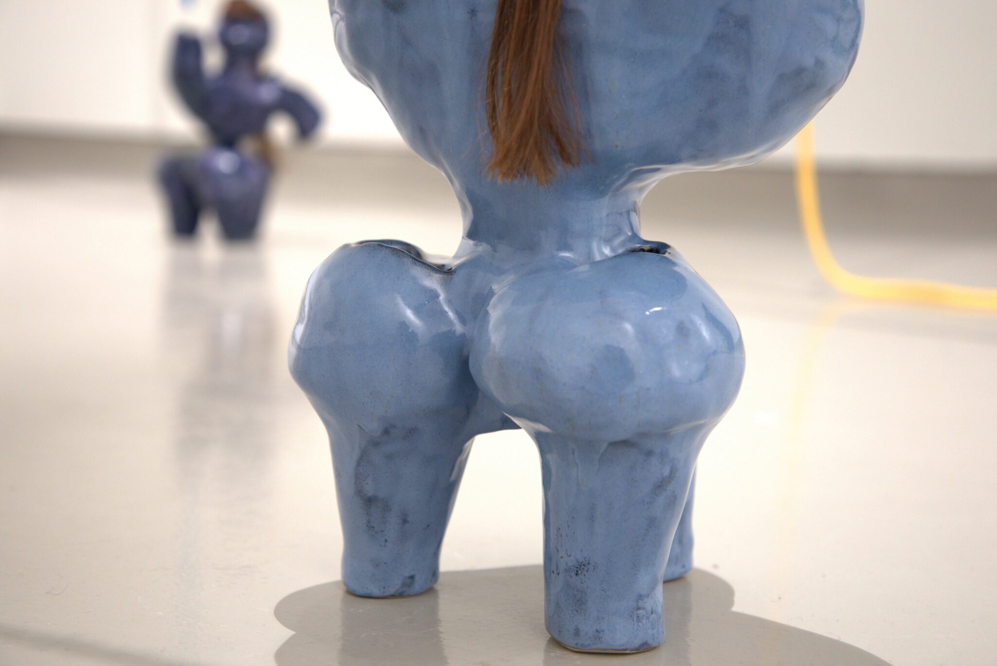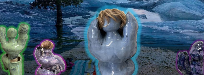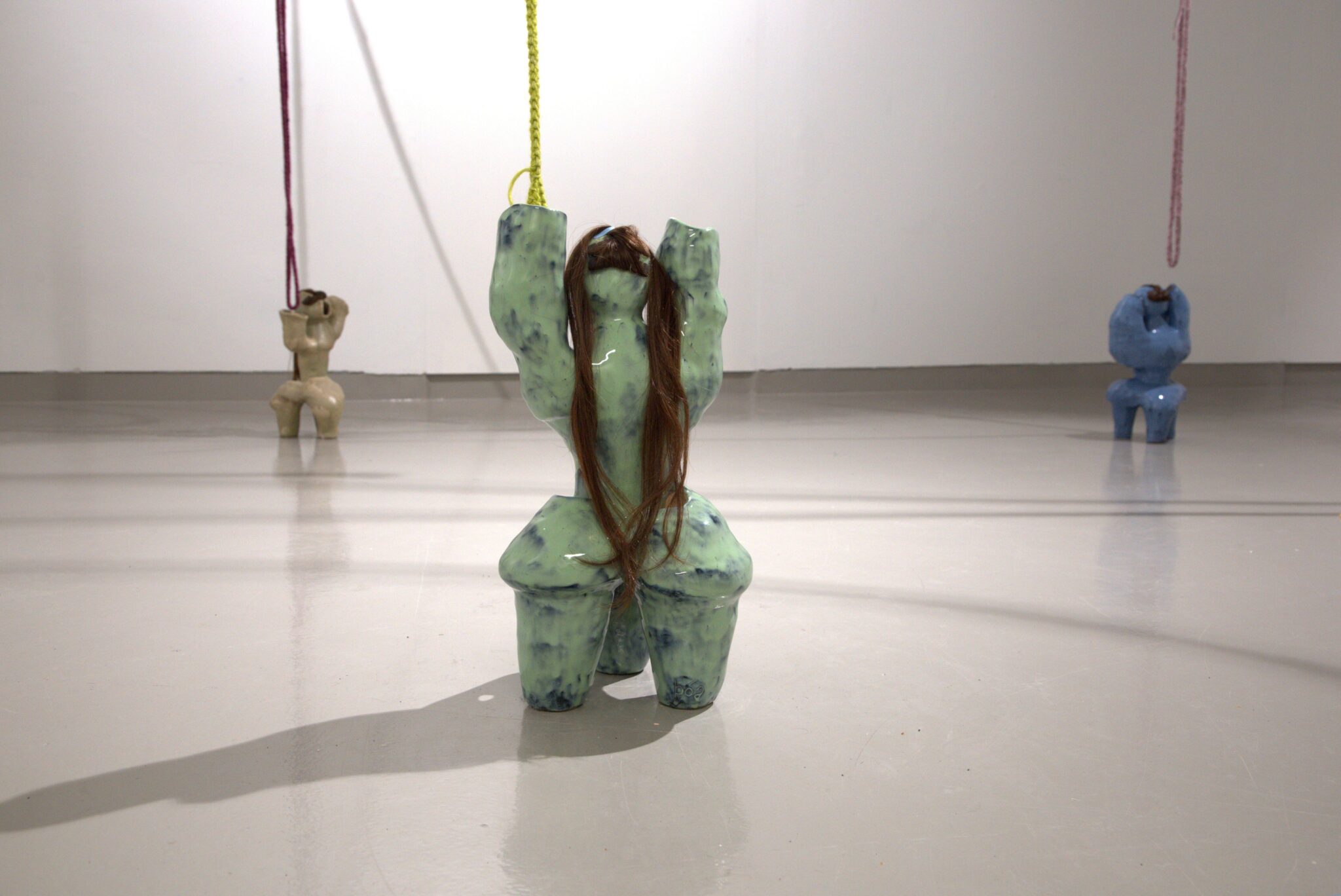 Hús Me‘llu invites you to a one sided conversation where existing and belonging bjallar í eyrunum á okkur. Verur úr leir standa í rýminu og tala við hvora aðra, recognised as samfélag. In their conversation lies belonging to space, transforming in order til að vera hluti af samfélagi okkar but missing the memo and staying true to themselves. They comfort one another and recognize each other as their own. Þau þrá að standa ekki fyrir neinu öðru en to exist.