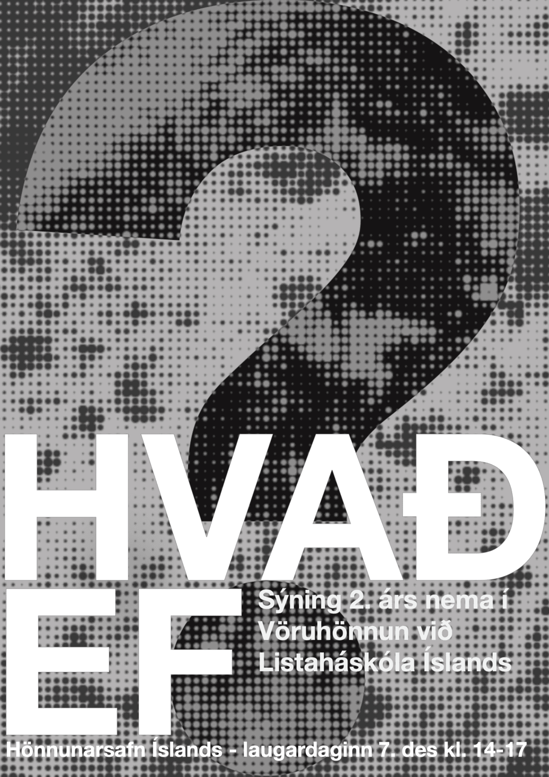 Sýningin er afrakstur annars árs í vöruhönnun úr áfanga í getgátu hönnun (e.Speculative Design) undir leiðsögn Elínar Margot. Nemendur sýna túlkun þeirra eftir að skyggnast inn í framtíð út frá vandamálum nútímans með spurninguna „hvað ef?“ sem leiðarljós.