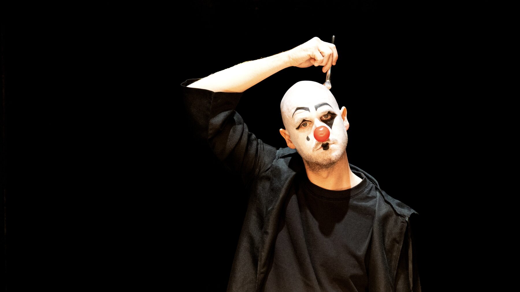 Meeting point downstairs in the hallway by the main entrance, walk through the building and up the round stairs to the performance space.
