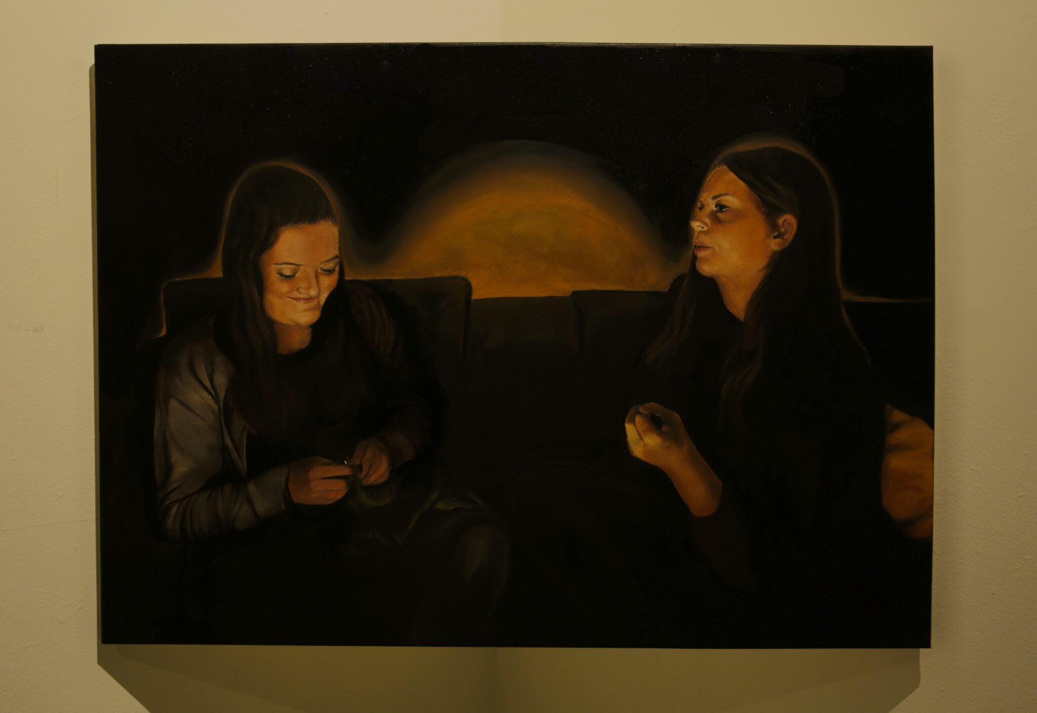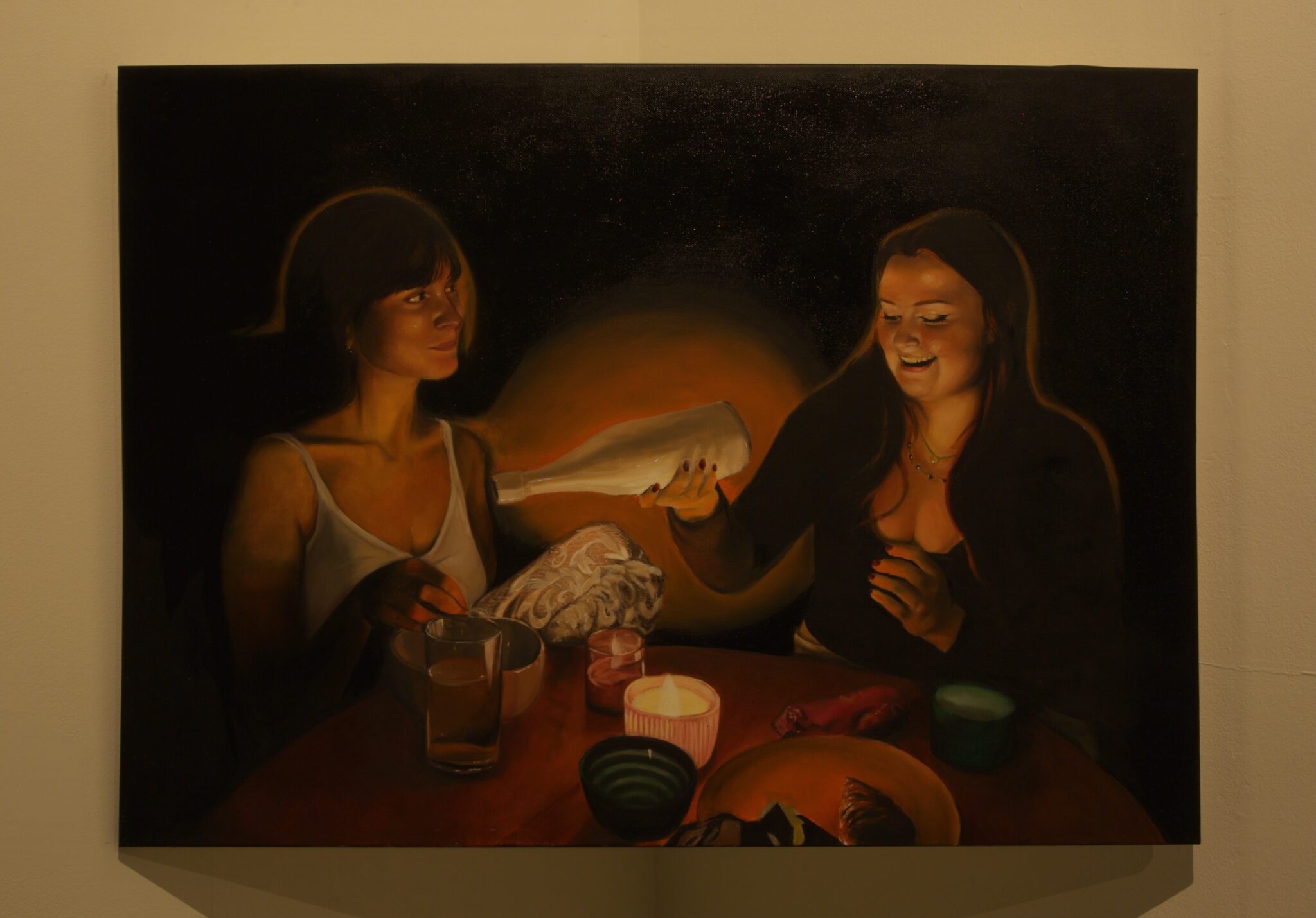 Nýleg olíumálverk mín kanna nándina sem felst í hversdagslegum augnablikum í platónískum tengingum. Hvert verk hefst á einfaldri athöfn sem opinbera eitthvað grundvallaratriði í sambandinu, hvort sem það eru systur að spjalla saman á meðan þær prjóna eða vinir sem halla sér saman yfir máltíð.