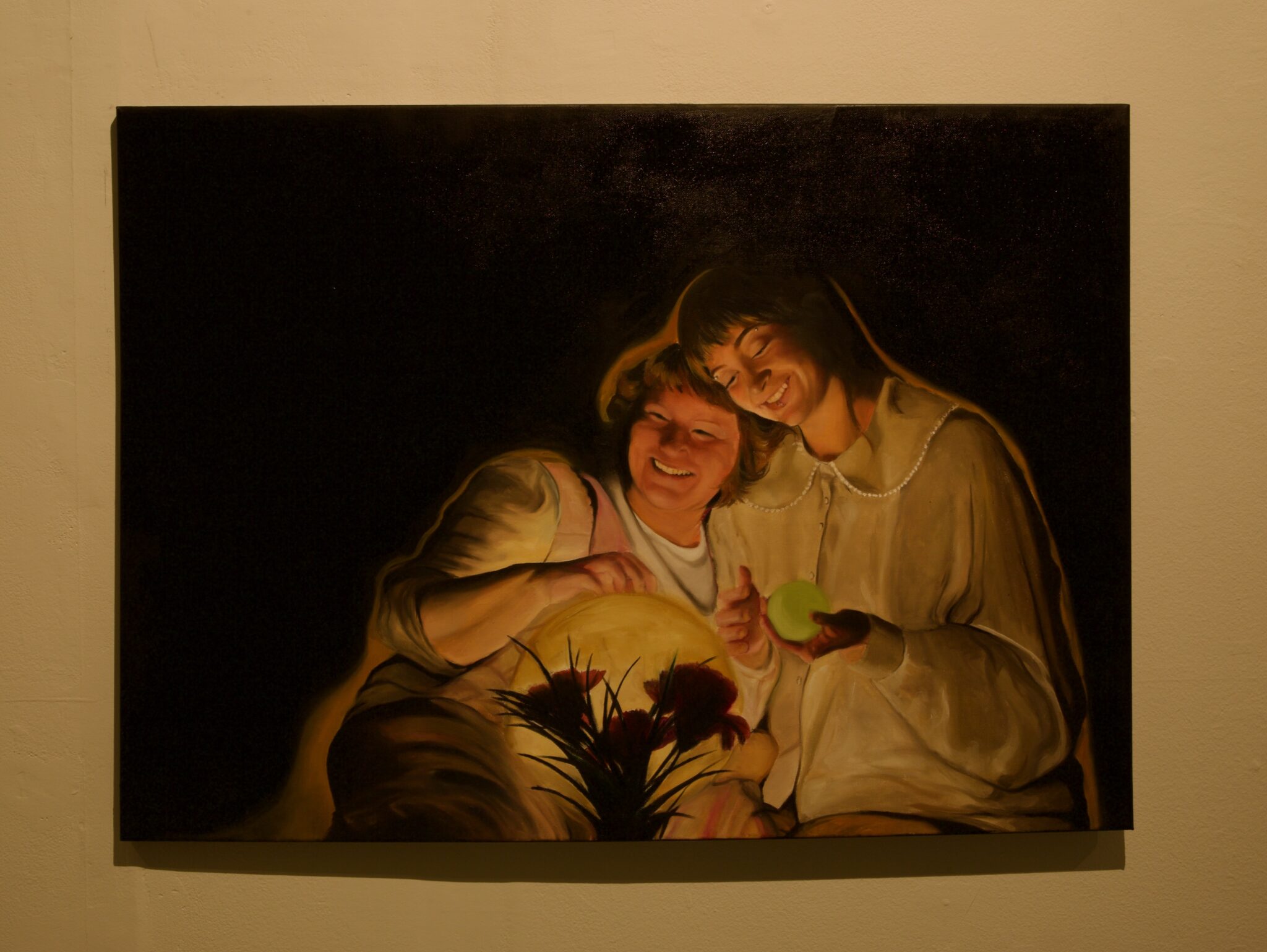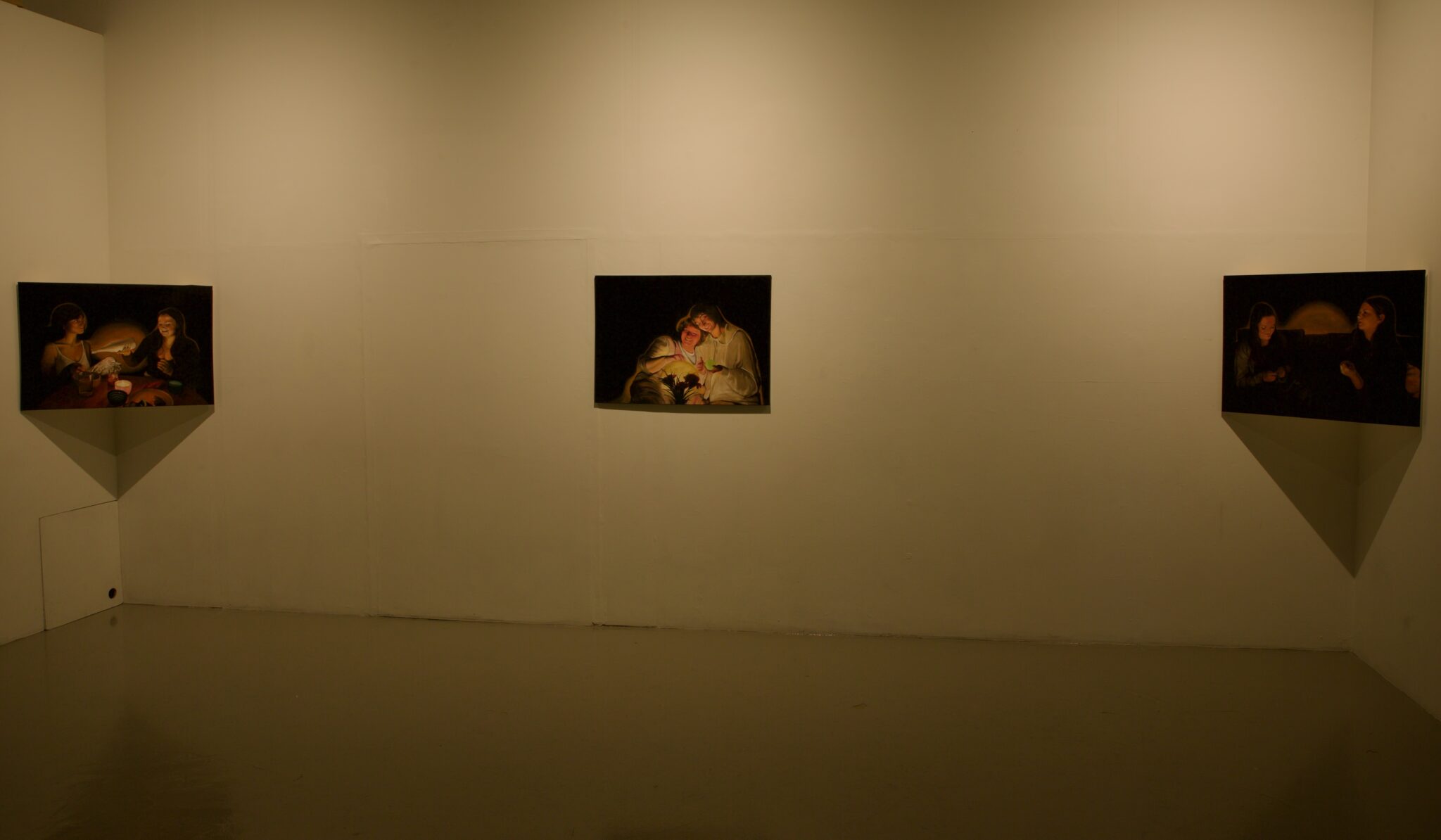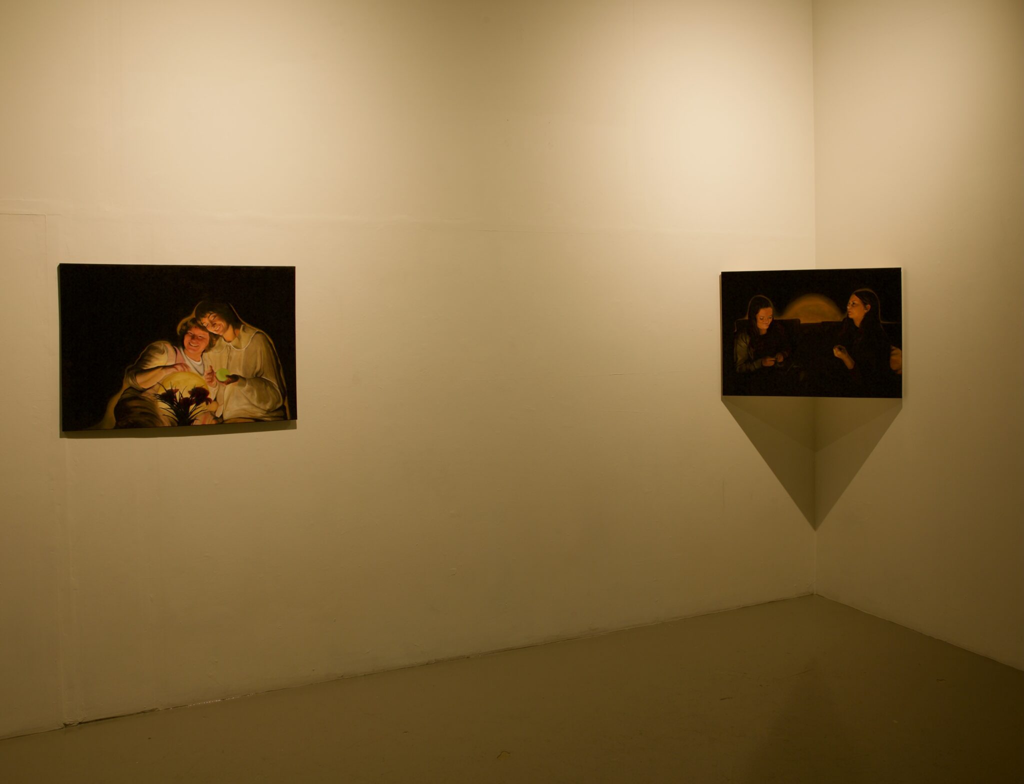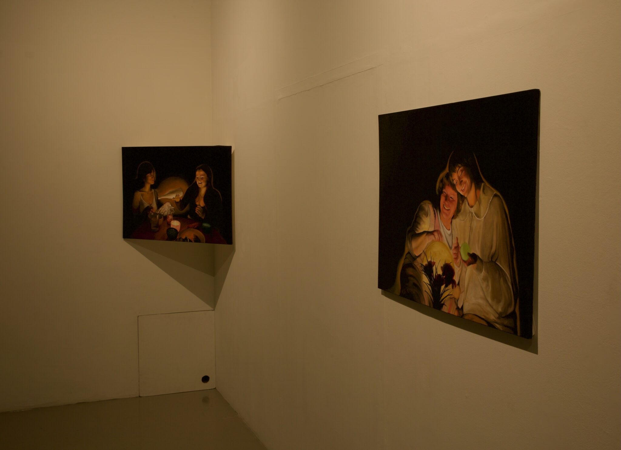 Uppstillt í kerta lýstum rýmum sækja þessi verk innblástur í Barokklist, þar sem myrkur og birtuskil magna andrúmsloftið og umbreyta hversdagslegum augnablikum í reynslu sem verður djúpstæð. Ljóminn beinir athyglinni að fínlegum smáatriðum eins og útréttum höndum, hlátri eða einbeittri hlustun sem annars gætu farið fram hjá manni.