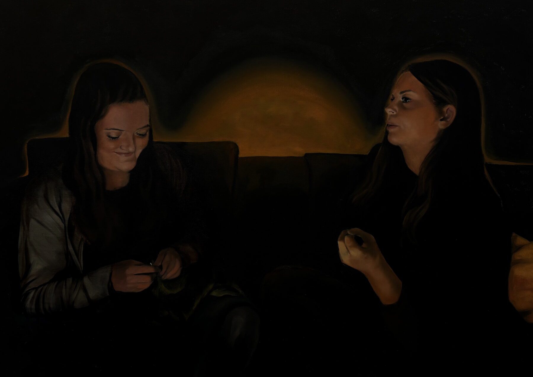Nýleg olíumálverk mín kanna nándina sem felst í hversdagslegum augnablikum í platónískum tengingum. Hvert verk hefst á einfaldri athöfn sem opinbera eitthvað grundvallaratriði í sambandinu, hvort sem það eru systur að spjalla saman á meðan þær prjóna eða vinir sem halla sér saman yfir máltíð.
