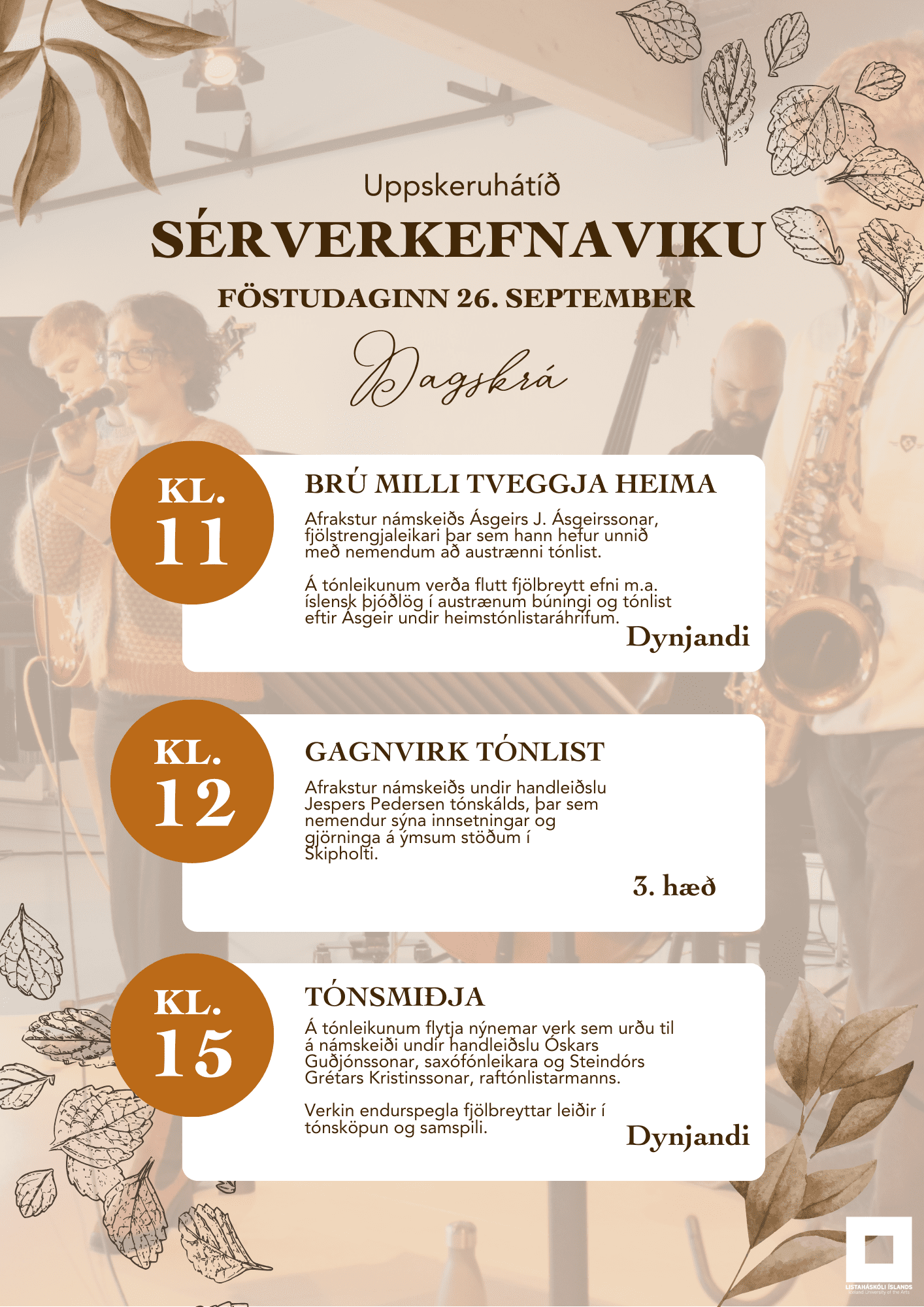 Viðburðirnir fara allir fram í húsi Tónlistardeildar, Skipholti 31.